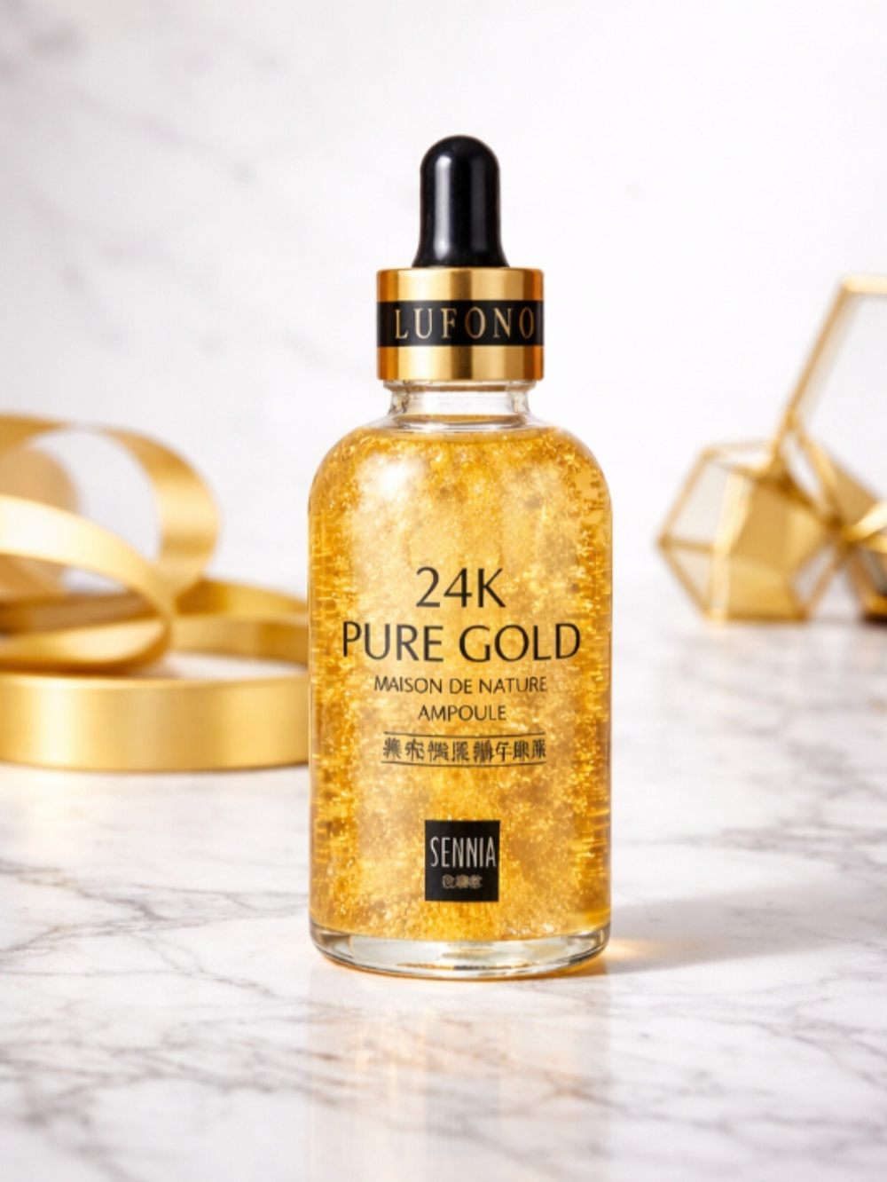 Nous avons réuni le meilleur de la cosmétique de luxe dans un seul sérum : or 24K, acide hyaluronique et ingrédients de qualité supérieure pour offrir une hydratation intense, une peau revitalisée et un éclat incomparable. Inspiré des rituels de beauté coréens, ce sérum transforme votre routine en un véritable moment de soin et de luxe, pour une expérience qui fait toute la différence.
